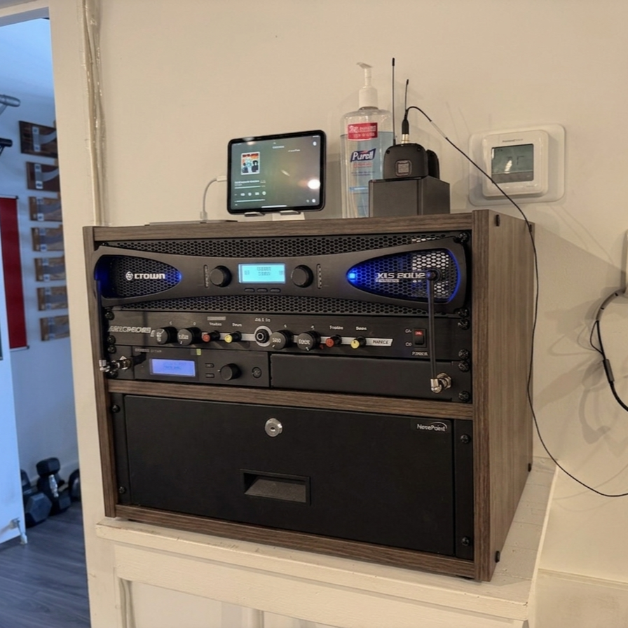 Each studio is now running shure SLXD+ wireless systems with backup body packs ready to go, rechargeable docking stations, Crown XLS2002 amplifiers, and four JBL Control 25-1L loudspeakers. Clean, reliable, and more than capable of keeping up with the energy a Pure Barre class brings, because if there's one environment where your sound system can't check out halfway through, it's a room full of people who showed up at 6am ready to put in work.